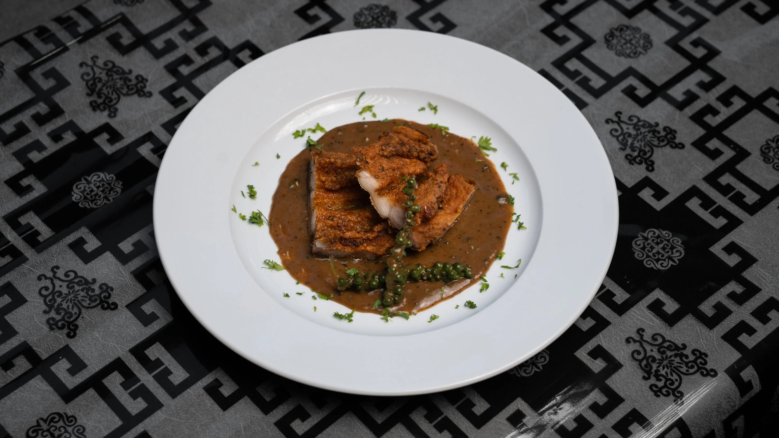 Pork Belly with Green Peppercorn Sauce