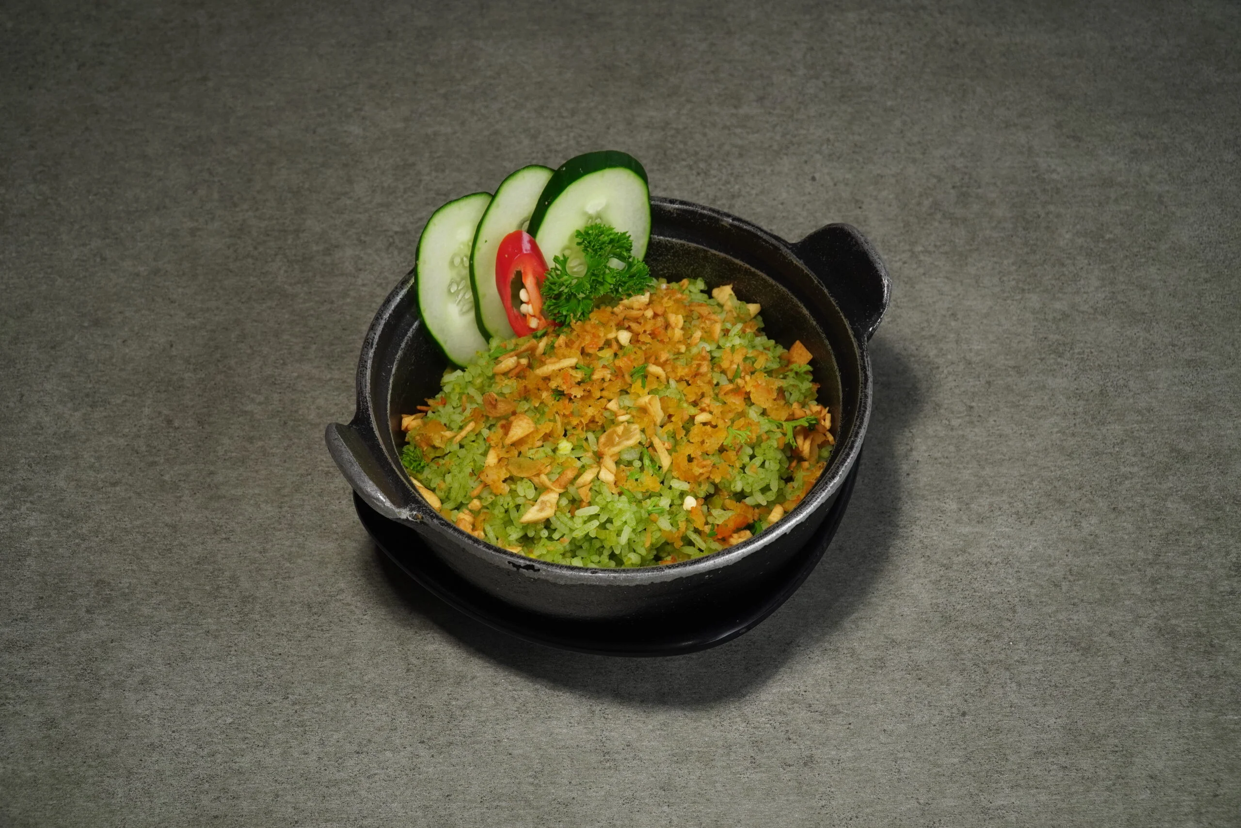 Emerald Fried Rice with Crispy Shrimp