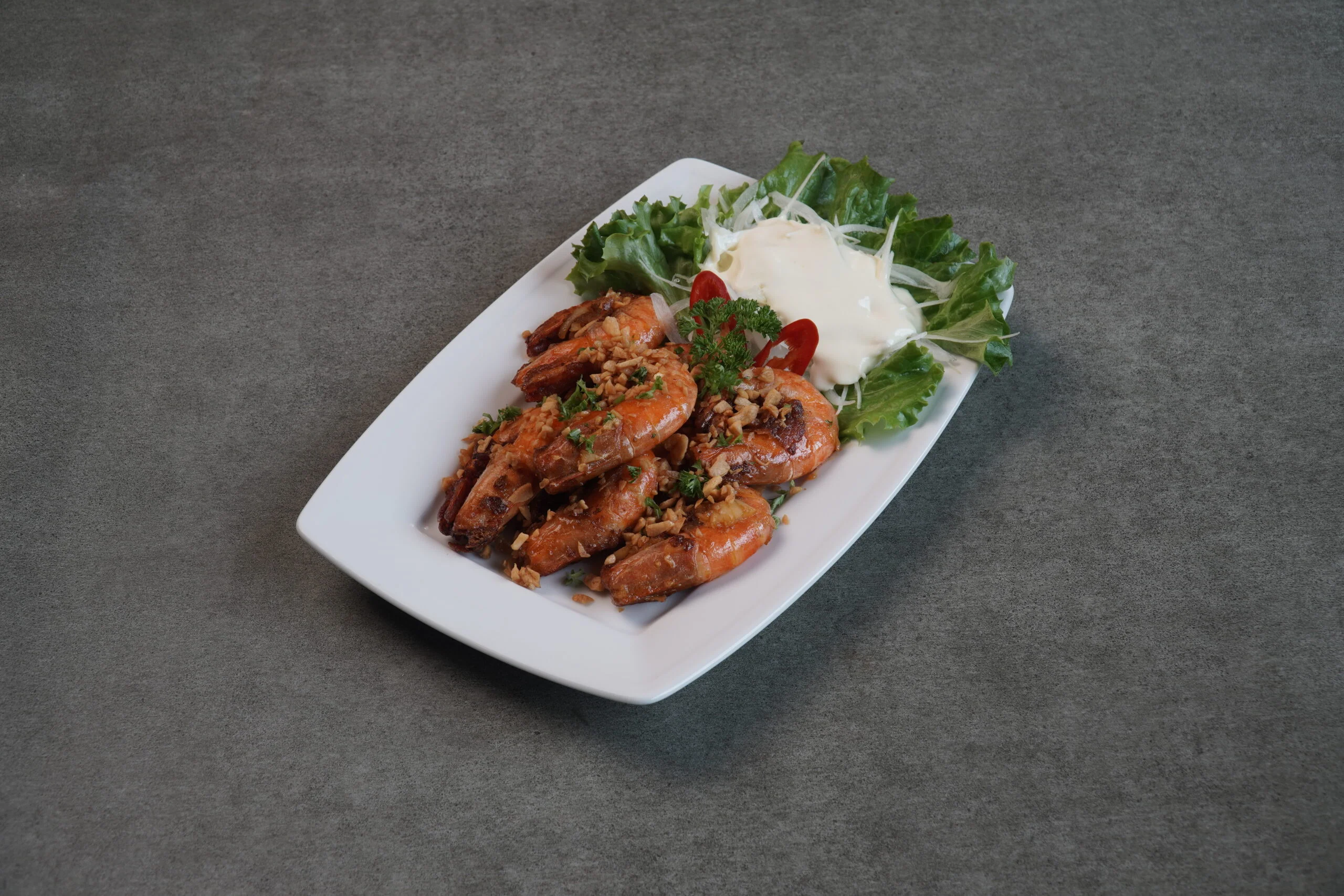 Tôm rang tỏi sốt kem hành