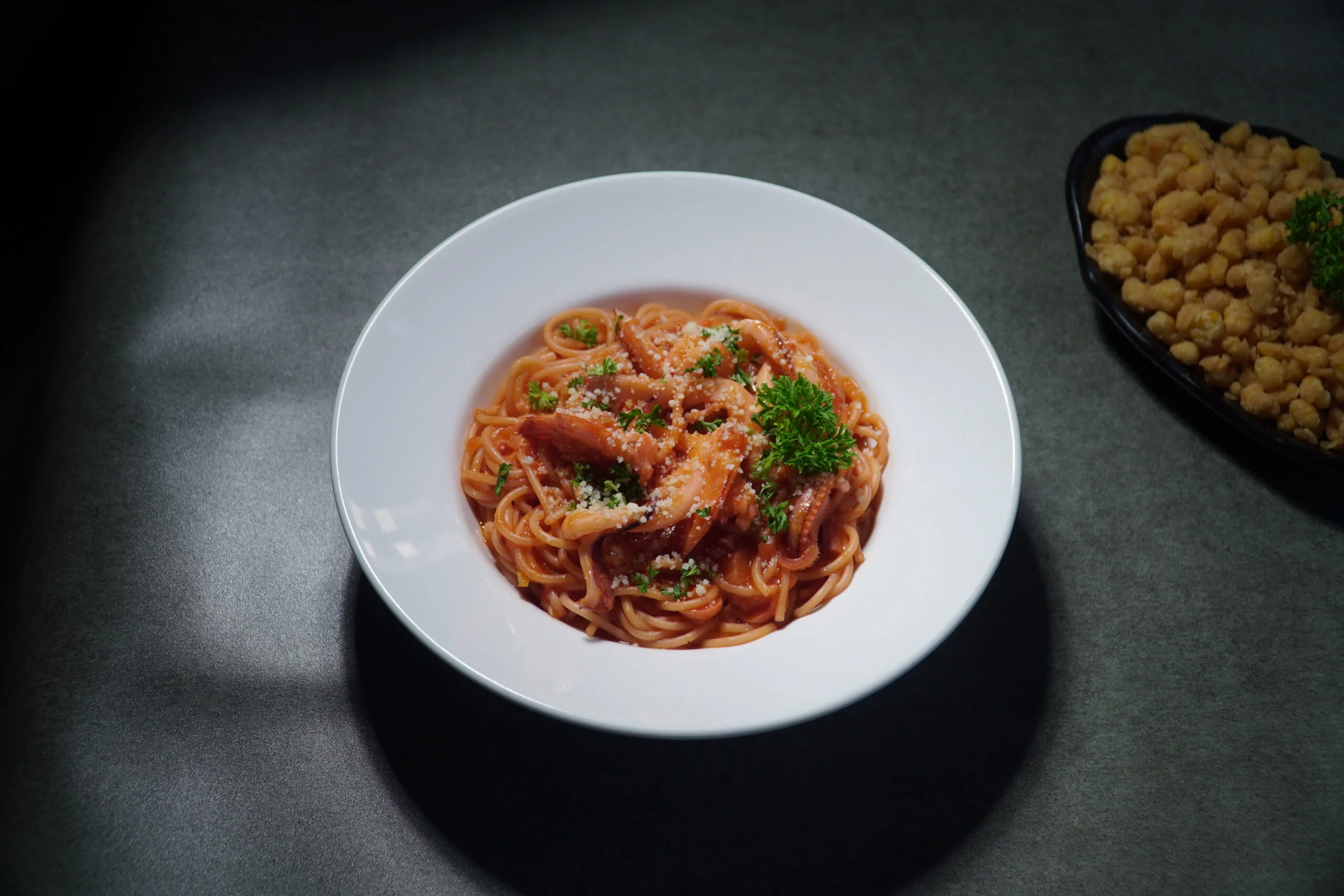 Spaghetti with Seafood & Mushroom Sauce